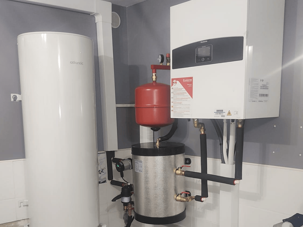 Même sans chaudière, l’ECS peut être produite efficacement : par ballon électrique, ballon thermodynamique sur air ambiant ou air extrait, ou pompe à chaleur air/eau « duo » avec ballon. L’eau est chauffée via un échangeur, stockée, puis maintenue à température par une régulation ; la production passe en priorité ECS au besoin. Le chauffage des radiateurs et/ou du plancher peut rester assuré en parallèle. Le remplacement d’une chaudière fioul ou gaz est pris en charge, et nos équipes vous orientent vers la solution la plus adaptée.